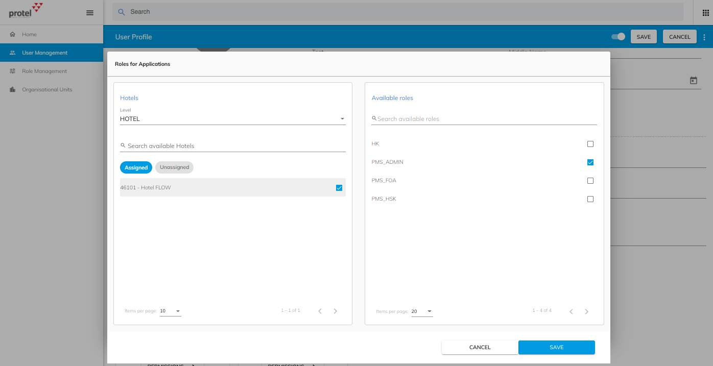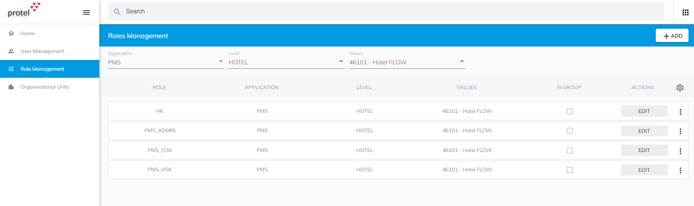 De rollen kunnen bekeken worden in Role management