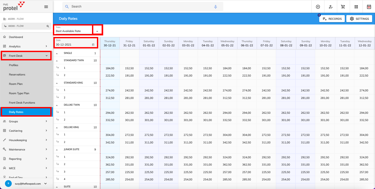 Indien er een andere prijs staat dan in de daily rates, dienen de 'revision numbers' gereset te worden: #76