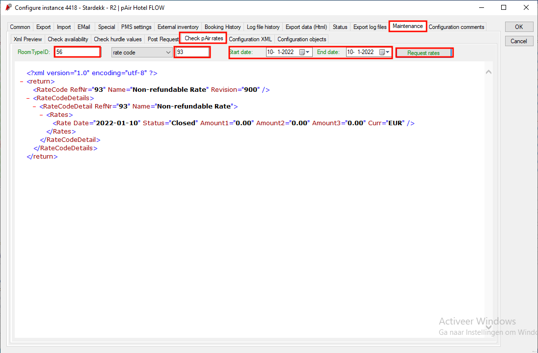 Maintenance > check pAir rates = Controleer of de IDS de juiste prijs herkent van protel.