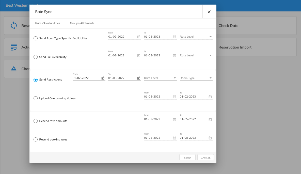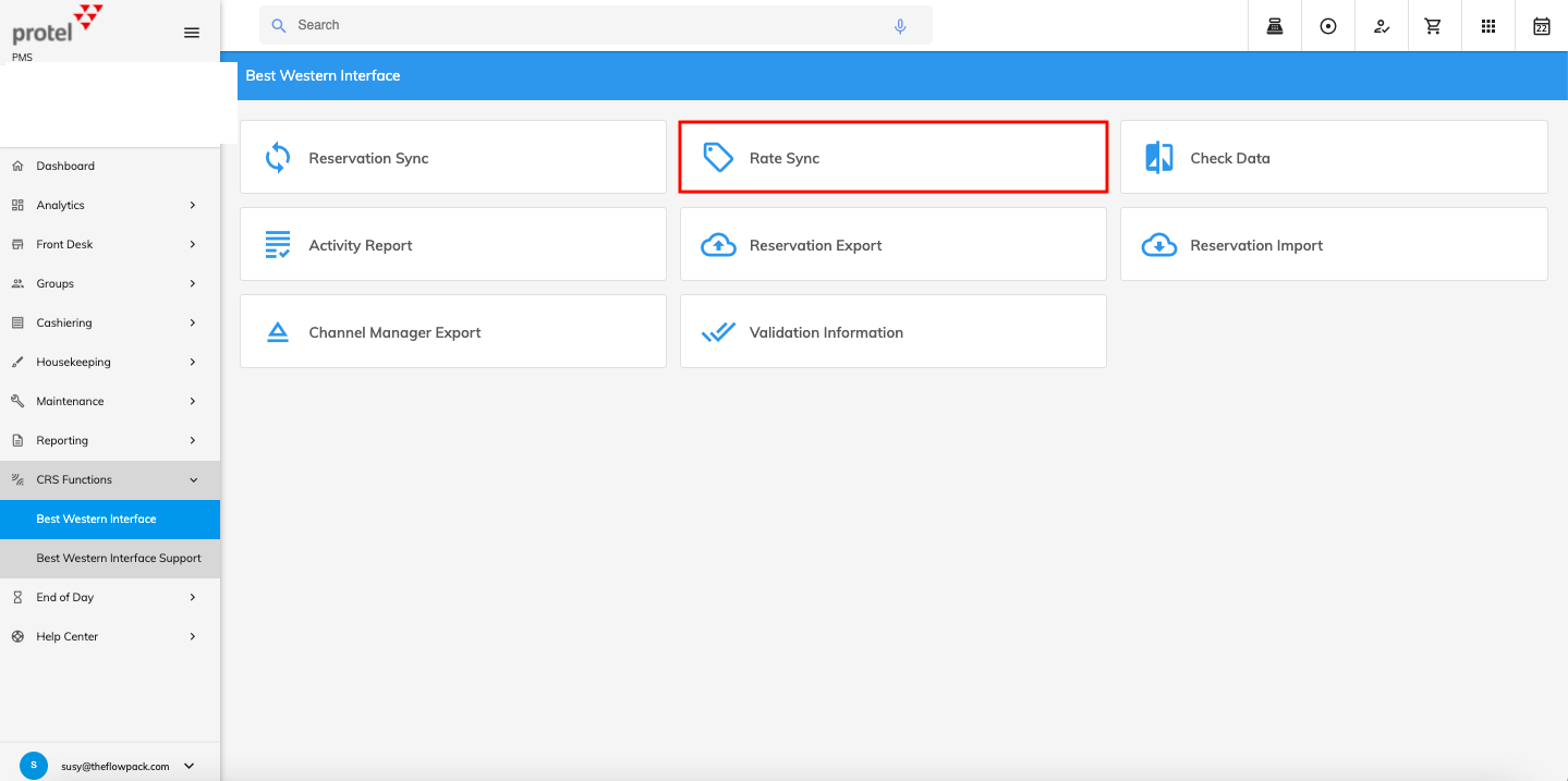Hiervoor ga je naar de CRS functies > Best Western Interface > Rate Sync