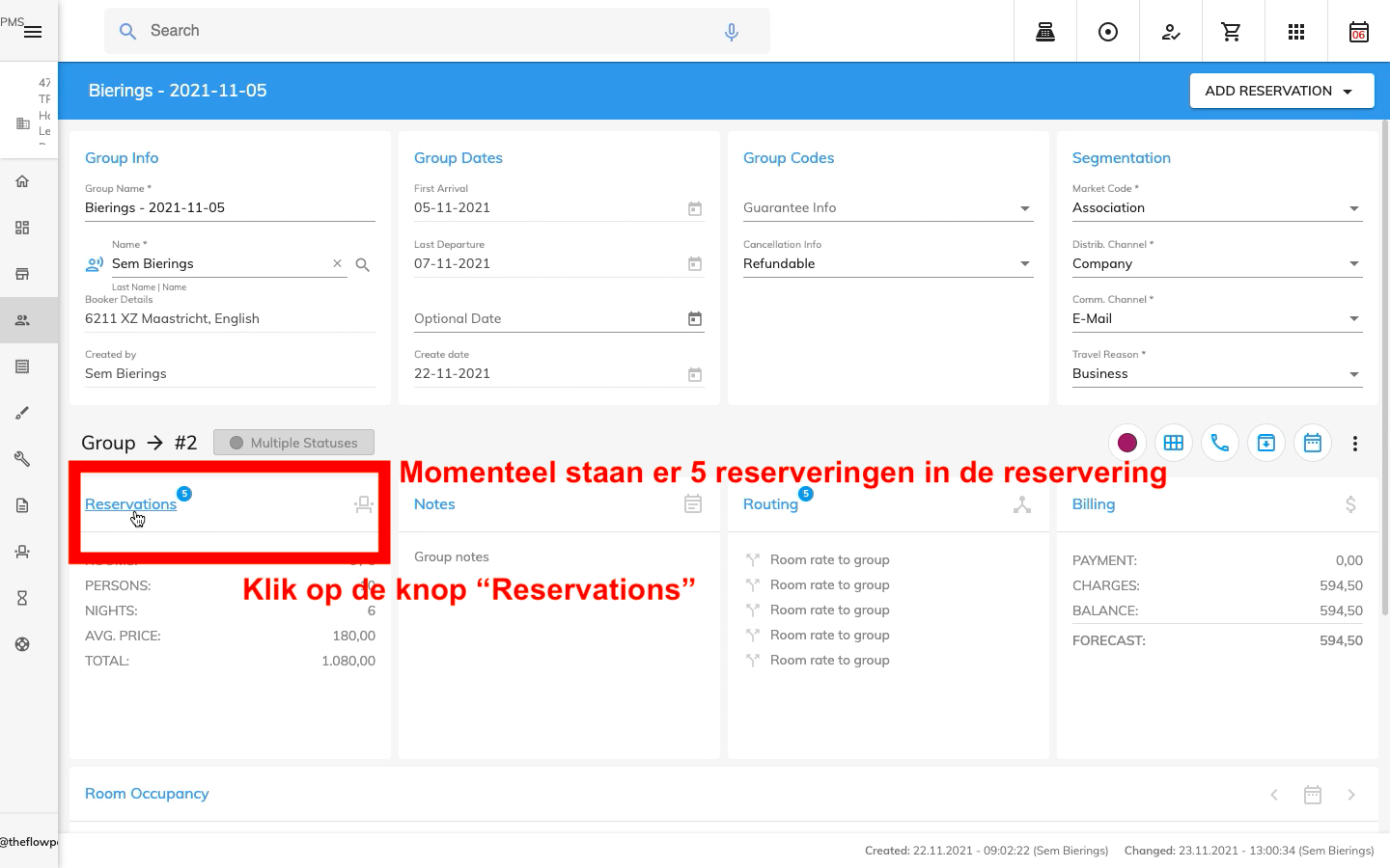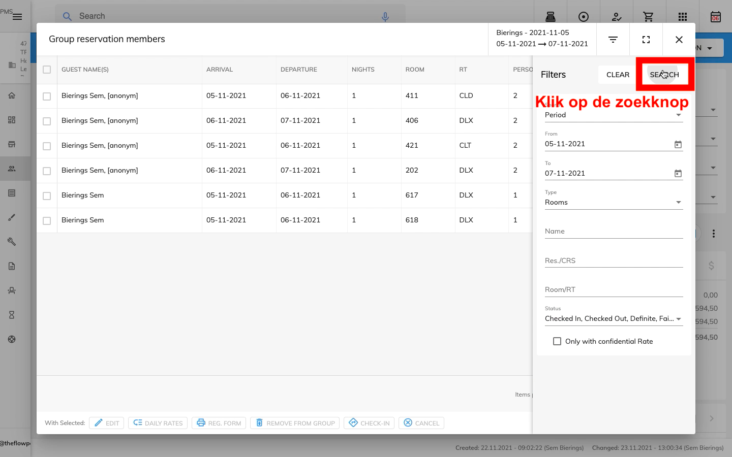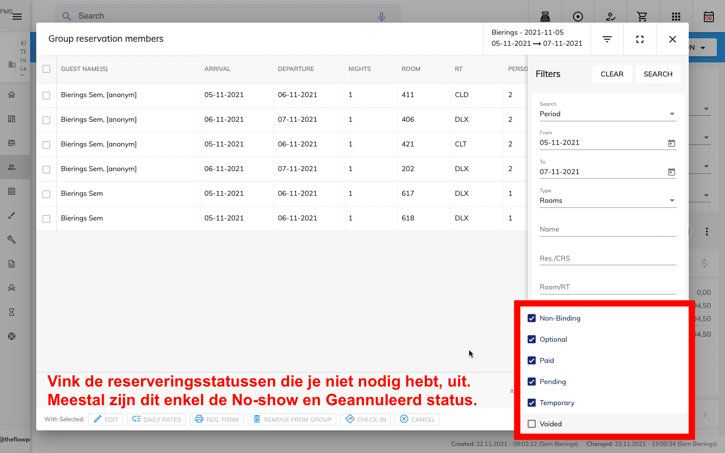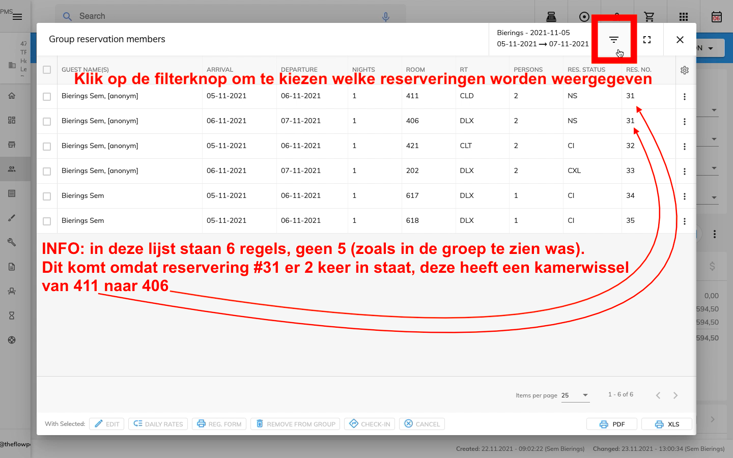 Dezelfde lijst in de groepsreservering geeft bij verschillende users verschillende resultaten