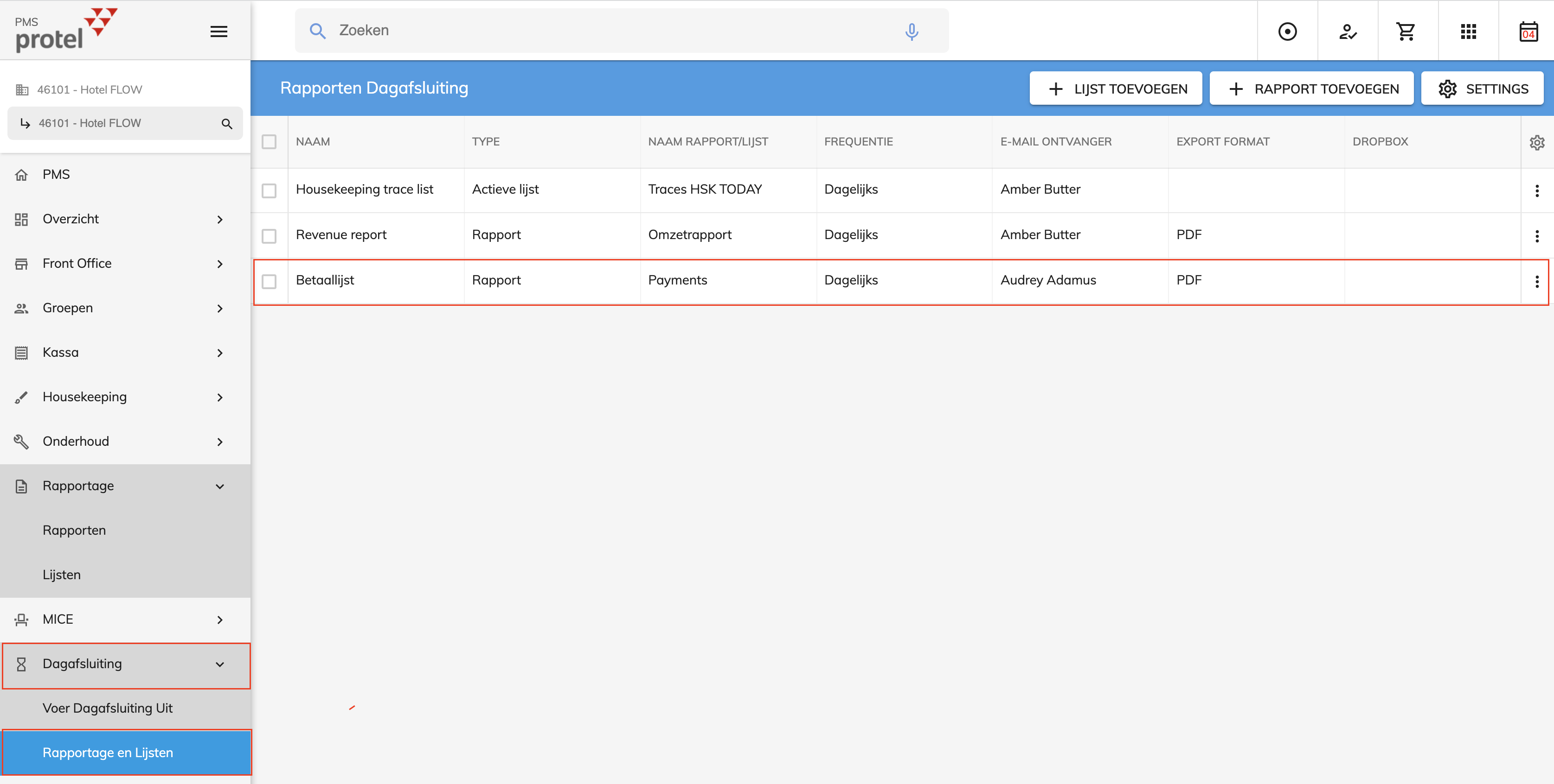 Hiervoor ga je naar dagafsluiting - rapportage en lijsten.