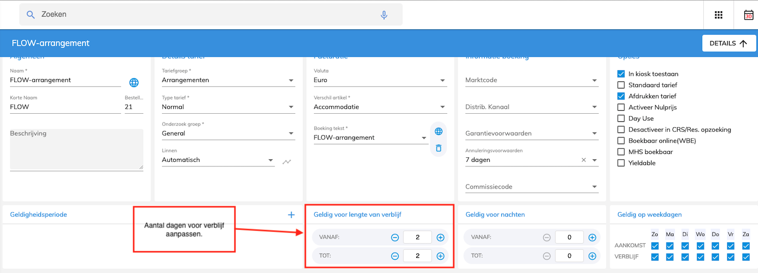 Het inkorten zou moeten lukken, mits het tarief geen minimum length of stay (MLOS) heeft. Wanneer een tarief een MLOS heeft dienen de volgende stappen uitgevoerd te worden: