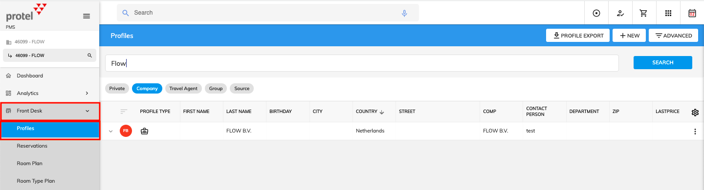 Het moet standaard Flow BV zijn, dus ga je naar profielen en zoek je het juiste profiel op: