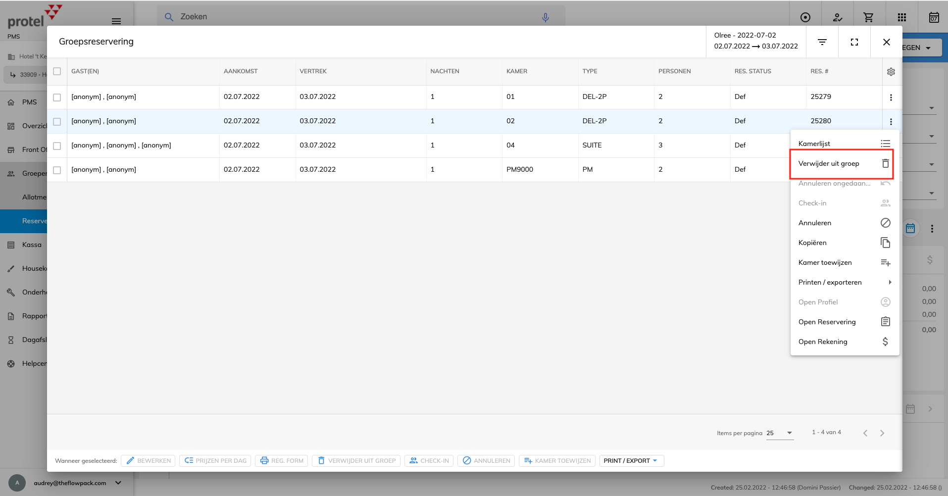 Vervolgens kies je je juiste reservering om uit de groep te verwijderen